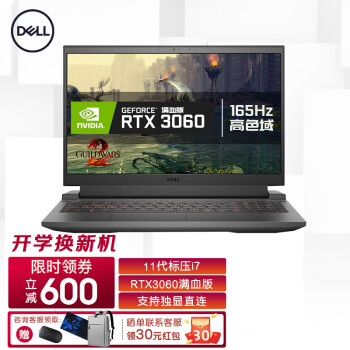 戴尔(DELL)游戏本游匣G15 5511 15.6英寸电竞游戏商务学生手提制图笔记本电脑 i7-11800H RTX3060高色域165Hz 16G内存 512G固态标配 背光键盘